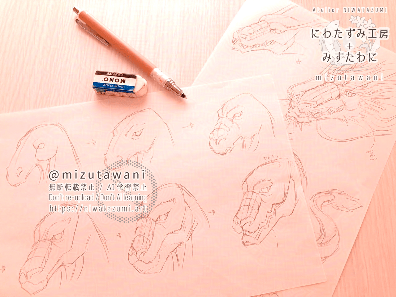と、言う訳で龍の描き方練習してから本番挑めました。昔の自分GJ!